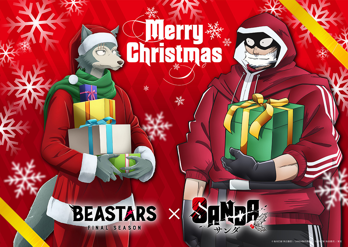 クリスマスシーズンかつ、『SANDA』がサンタクロースを題材にした作品にちなみ、『SANDA』からはサンタクロース、『BEASTARS FINAL SEASON』からはサンタ服に身をまとったレゴシが、皆さんへのクリスマスプレゼントを抱えています!!